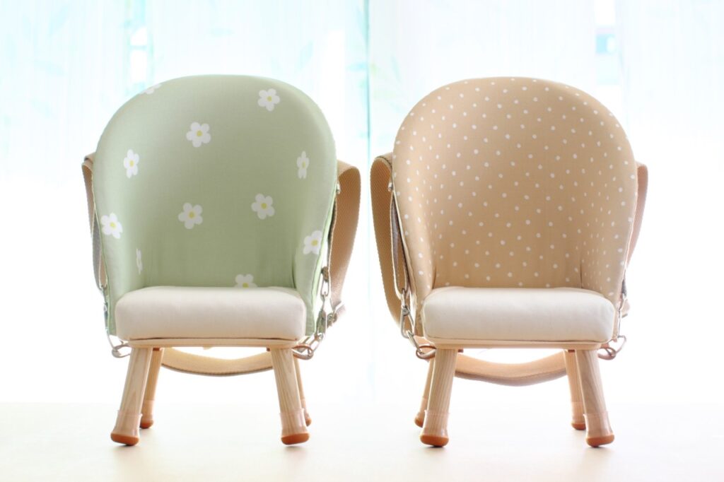 2025/12/11(木) の 20:00より、メルシーチェアのグリーン花柄・ベージュ水玉1点ずつを販売します✨️